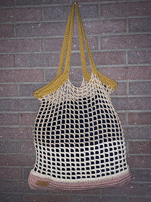 Heklede nett med striper i DROPS Paris. Arbeidet hekles rundt nedenfra og opp. Oppskrift kommer her ifra - klikk her.